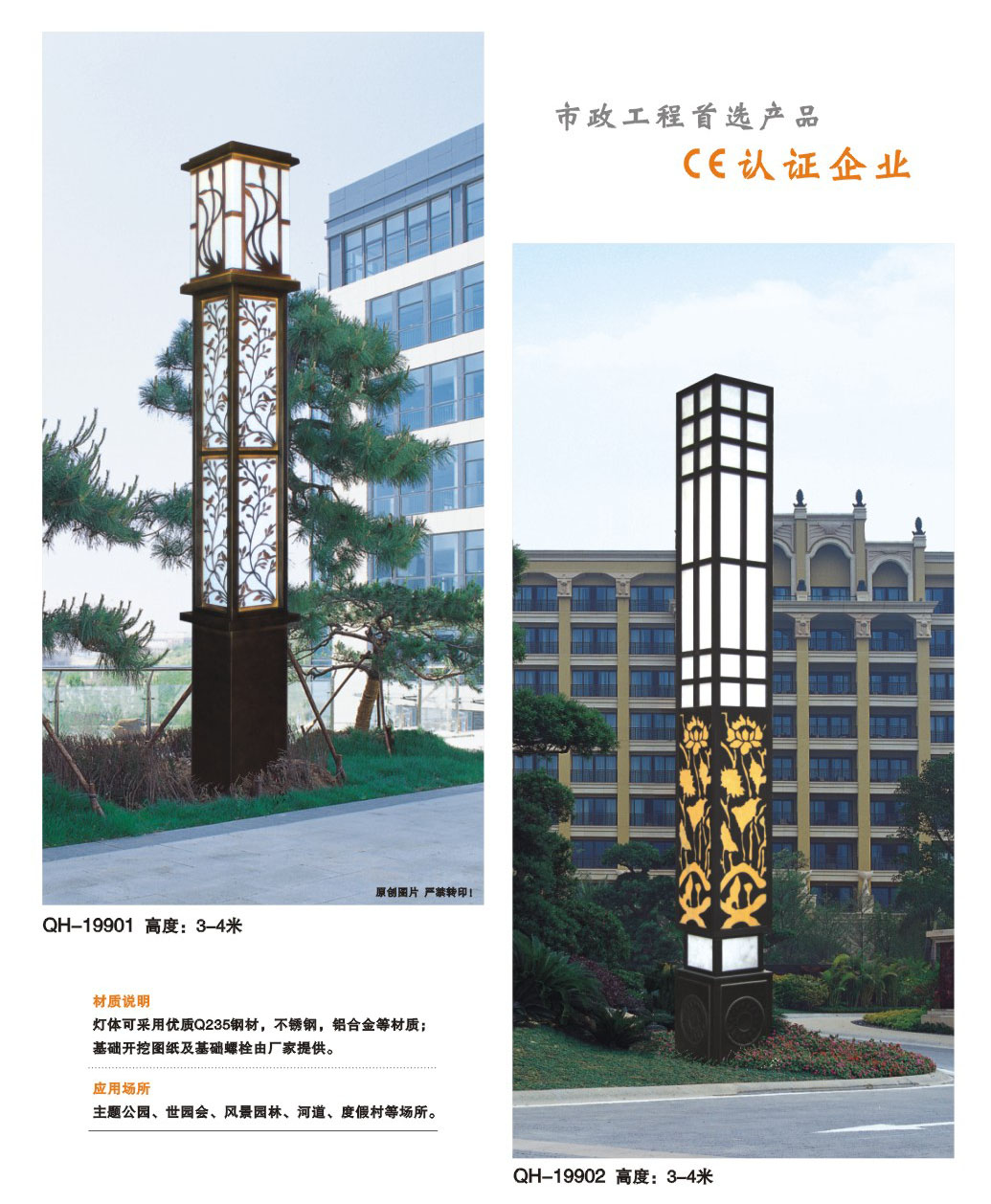用途:景觀燈適用市政工程、園林亮化工程和公園、開發區、別墅區、廣場等戶外路燈照明工程