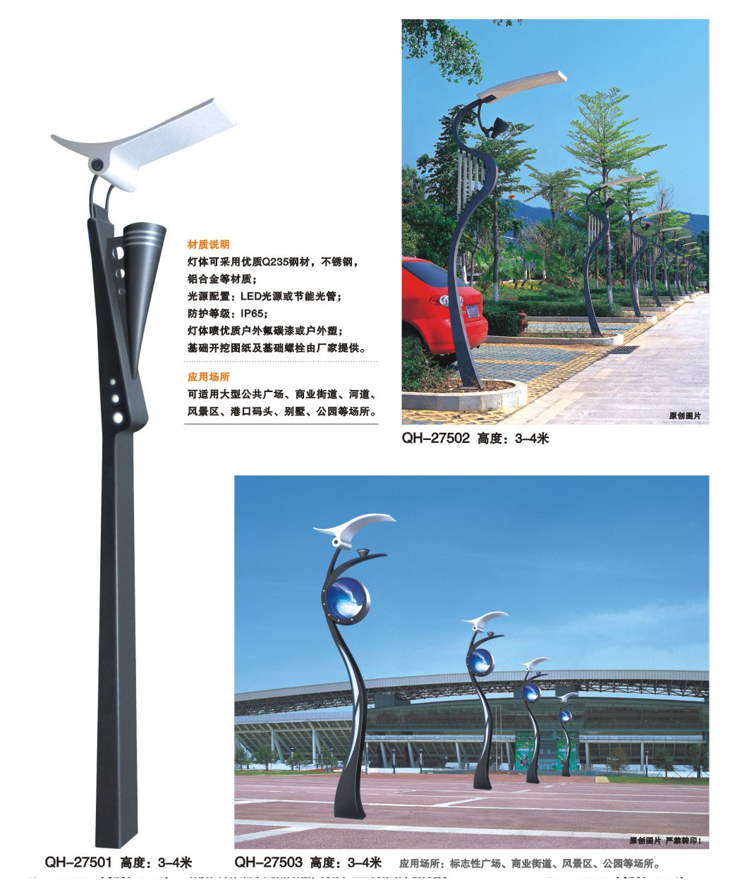 用途:景觀燈適用市政工程、園林亮化工程和公園、開發區、別墅區、廣場等戶外路燈照明工程