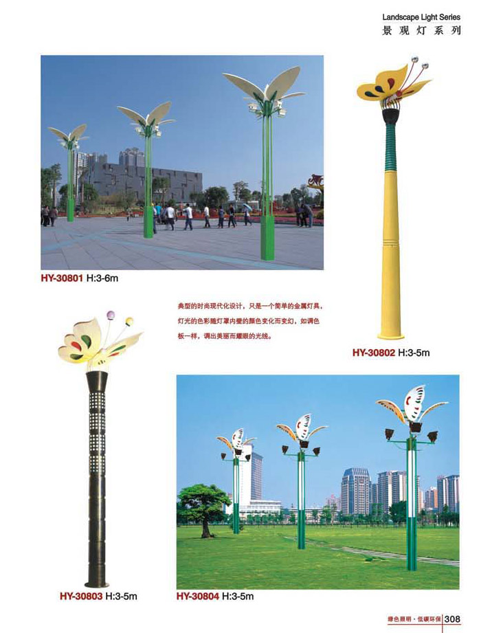 用途:景觀燈適用市政工程、園林亮化工程和公園、開發區、別墅區、廣場等戶外路燈照明工程
