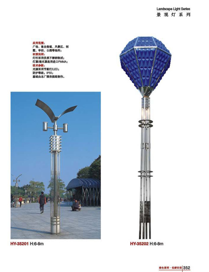 用途:景觀燈適用市政工程、園林亮化工程和公園、開發(fā)區(qū)、別墅區(qū)、廣場等戶外路燈照明工程