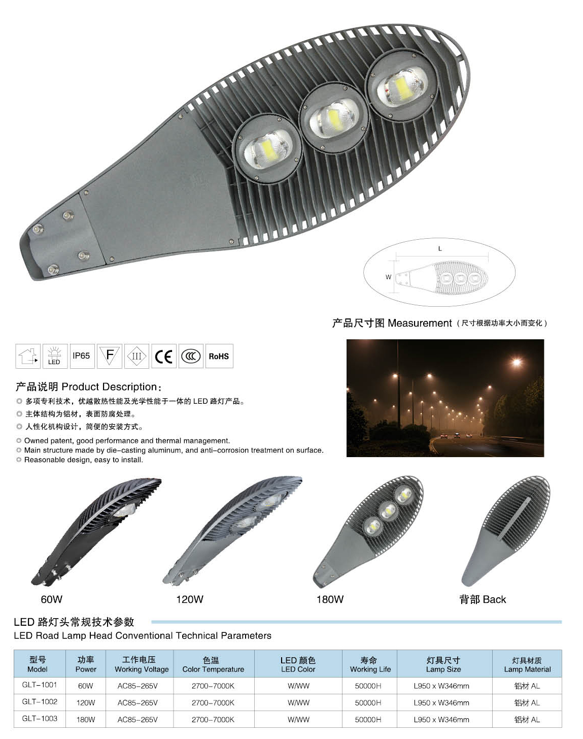 led路燈燈頭技術參數:
