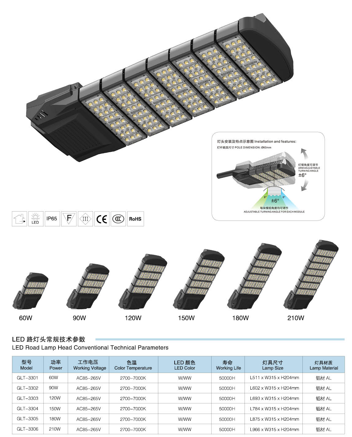 LED路燈頭GLT-3301 3302 3303 3304 3305 3306