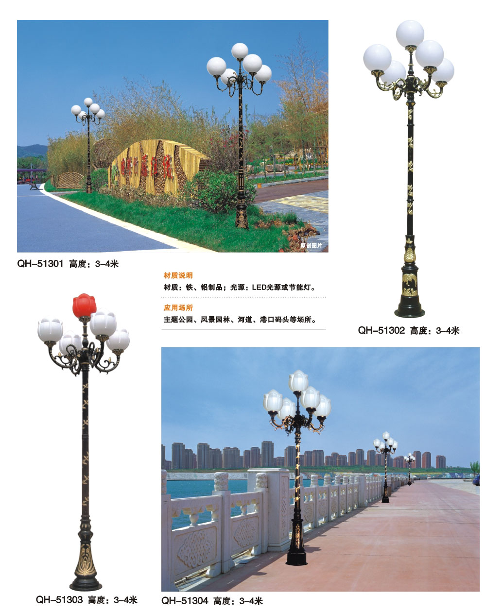 鑄鋁五頭庭院燈QH-51301 51302 51303 51304